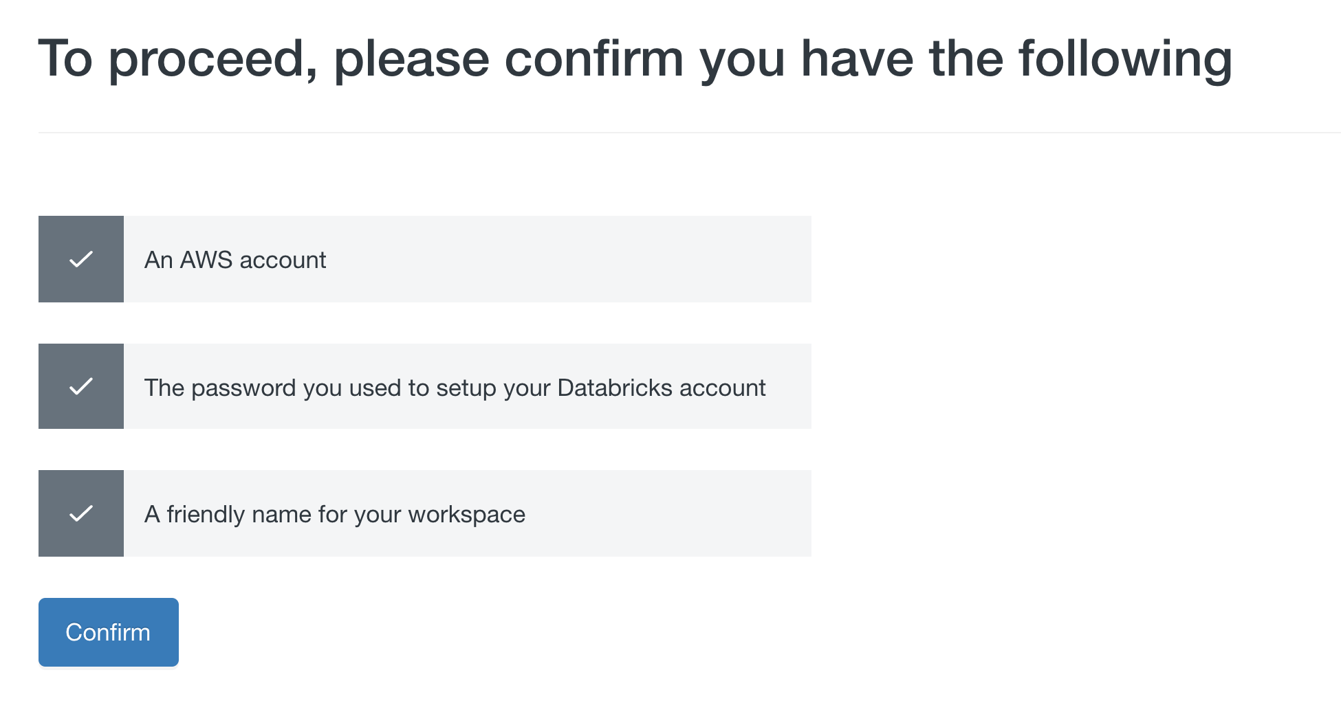 Use your existing account or sign up for a Databricks account. Complete the form with your user information.
